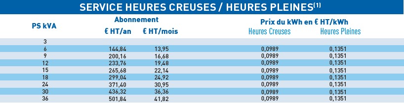 Le prix du kWh est composé de deux tarifs: Heures Pleines (HP) et les Heures Creuses (HC).