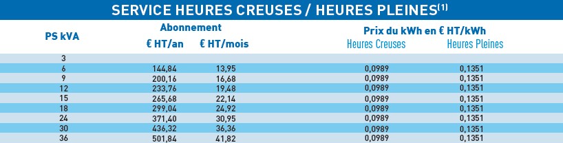- Elle s’adapte également aux utilisateurs de chauffage électrique. La durée des Heures Creuses est de 8 heures par jour, actuellement de 22h30 à 6h30.